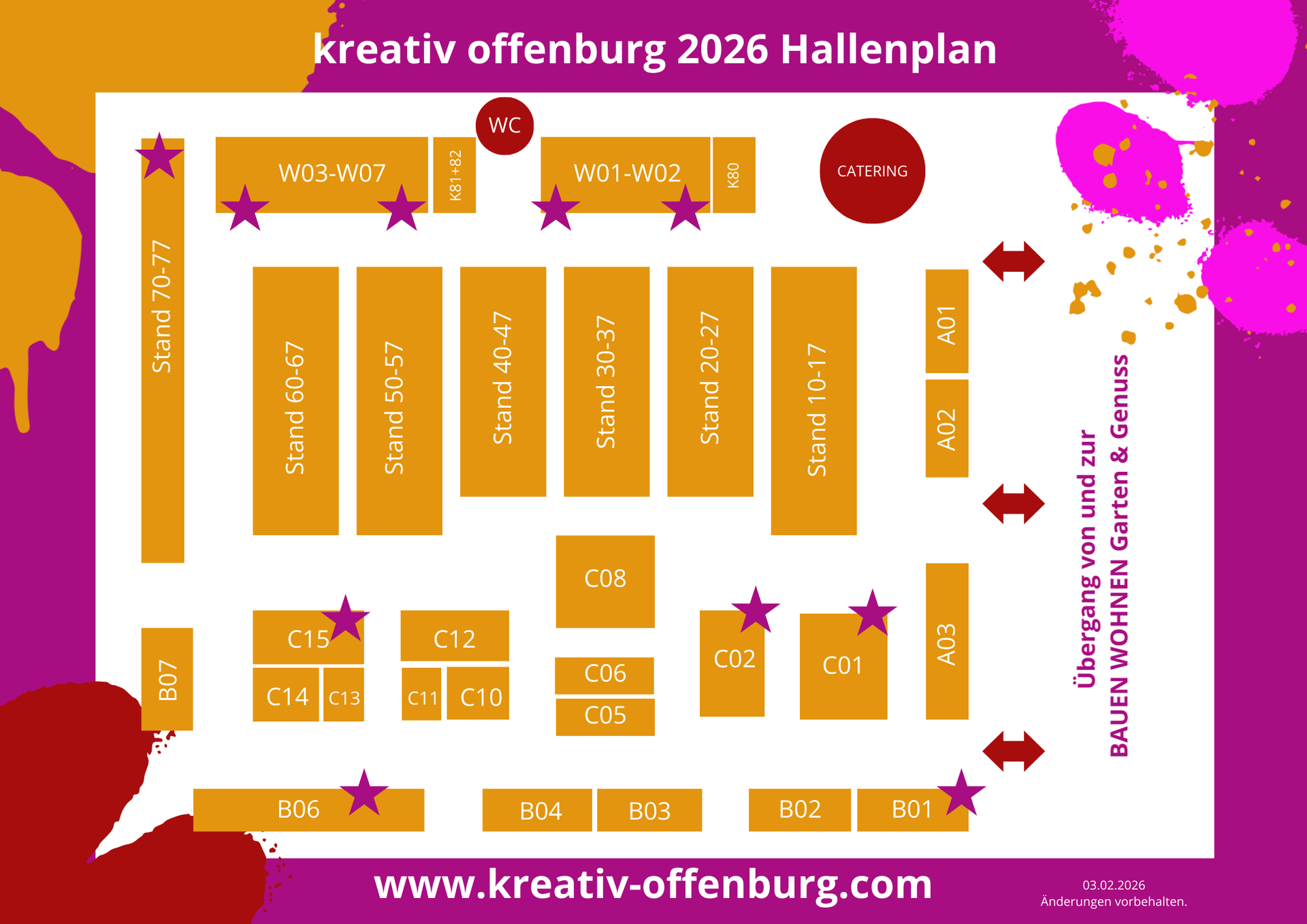 | Freitag 6.3.26 | 8:00 - 18:00 Uhr | Anfahrt AN die Halle möglich, EINfahrt nicht möglich |
