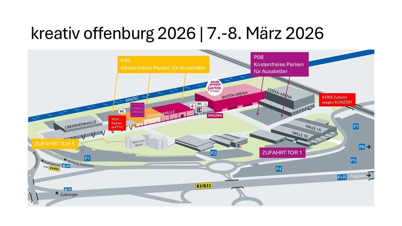 - Ab Freitag zusätzlich über Tor 5 (neben Eingang Oberrheinhalle)